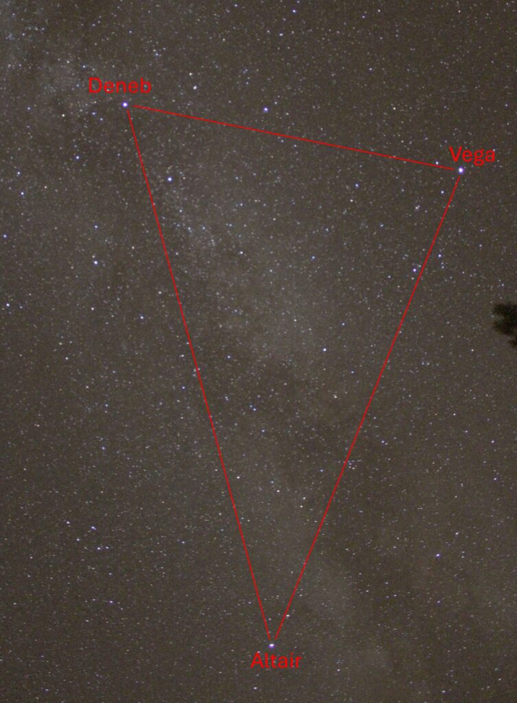 | The Summer Triangle near Flagstaff Arizona - 2020 (Tap or rollover image to see Summer Triangle) | The Summer Triangle near Phoenix Arizona - 2020 (Tap or rollover image to see Summer Triangle) |